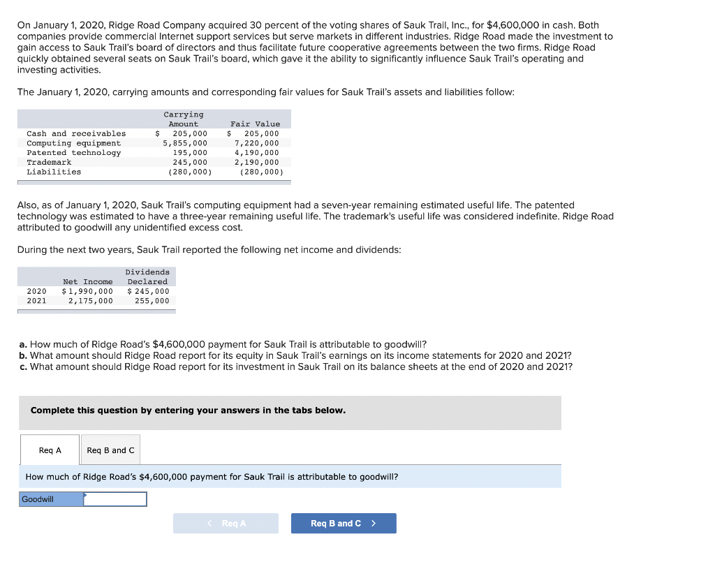 Solved On January 1 2020 Ridge Road Company Acquired 30 Chegg Com
